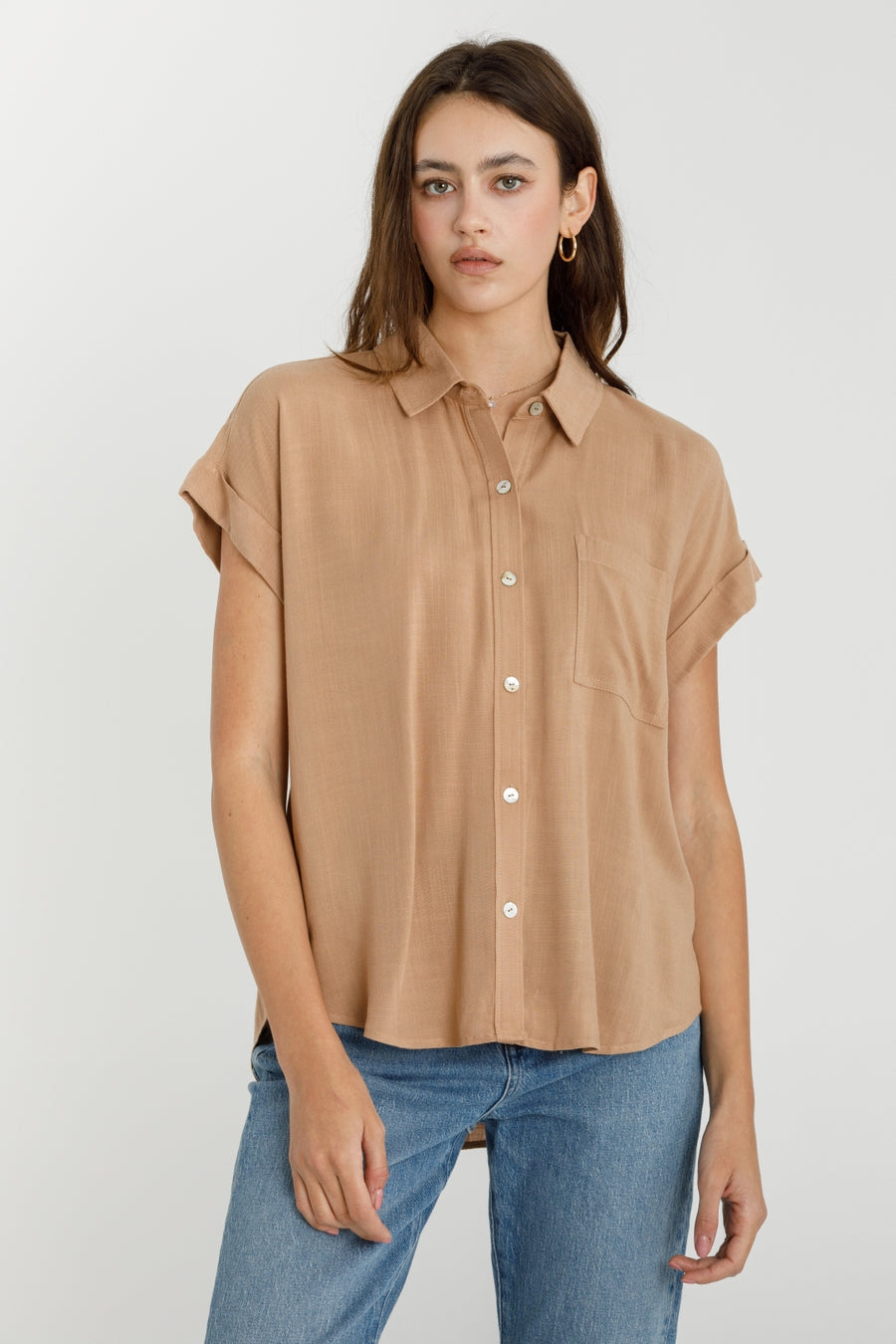 TELL ME ANYTHING BUTTON FRONT BLOUSE *FS