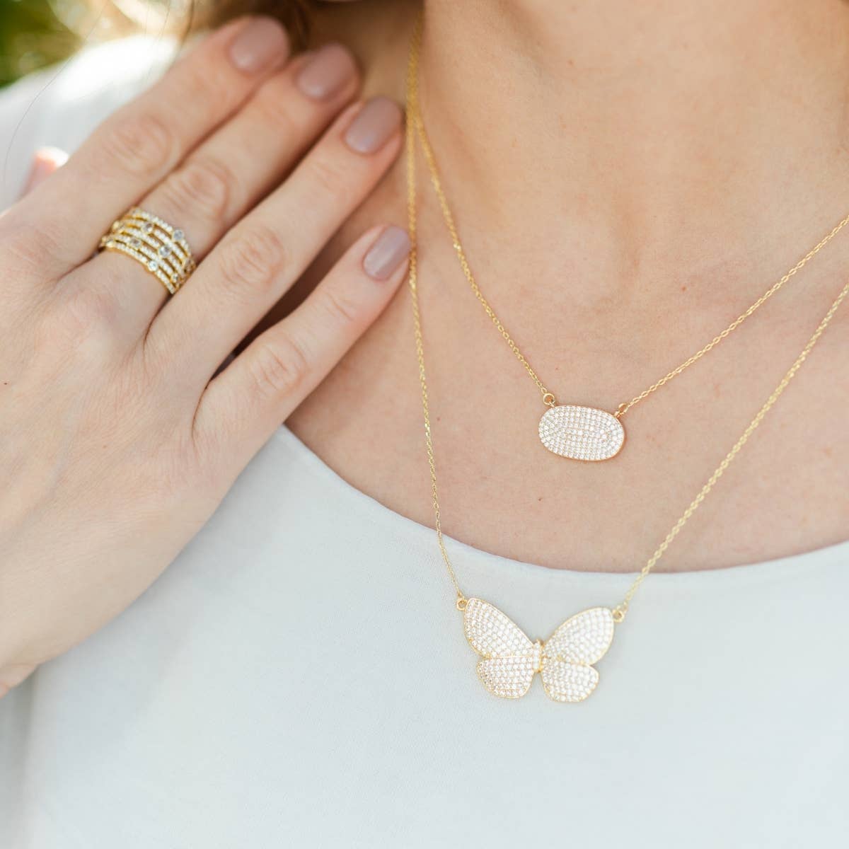 Elegant and timeless, the Unity Pavé Oval Pendant Necklace is crafted with your choice of 18k gold or rhodium plating and encrusted with sparkling cubic zirconia. This refined design features an open oval pendant symbolizing unity and balance, making it both meaningful and effortlessly stylish. The pavé-set cubic zirconia stones add a layer of brilliance and texture, catching the light beautifully with every movement.