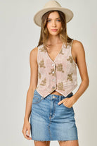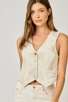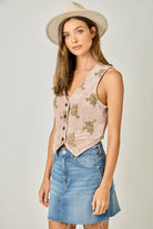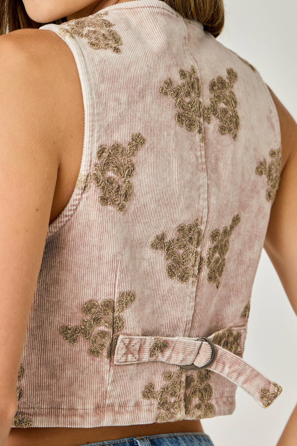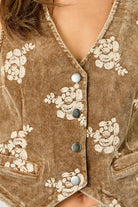 Oh hi, yes—you do need another vest. And this one? She’s the one. A textured brown corduroy dream sprinkled with ivory floral embroidery that says, “I’m vintage chic, but I also know my way around a latte order.” â˜•đŸ’â€â™€ïž