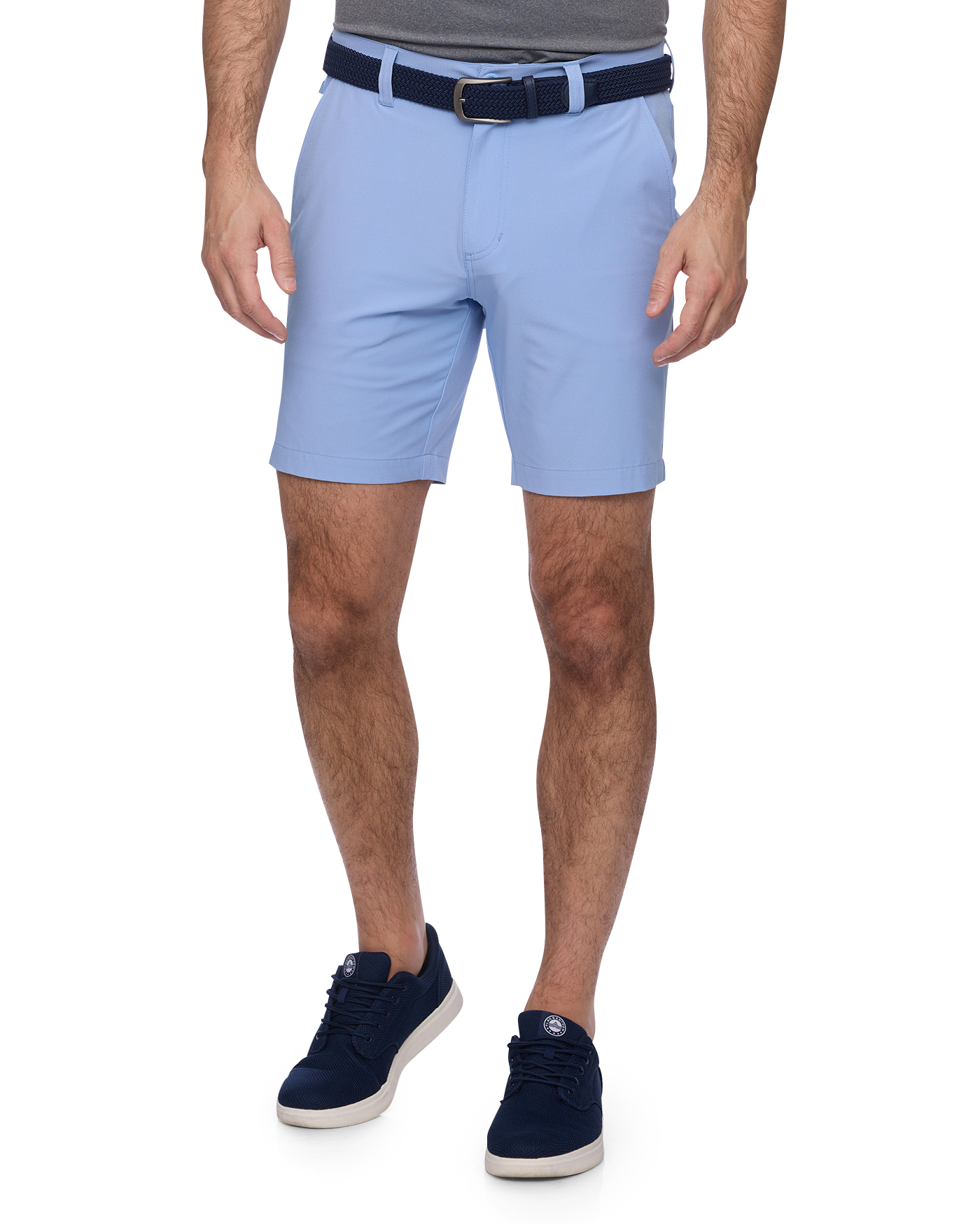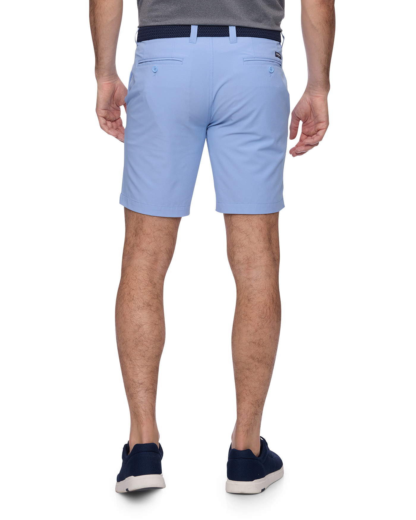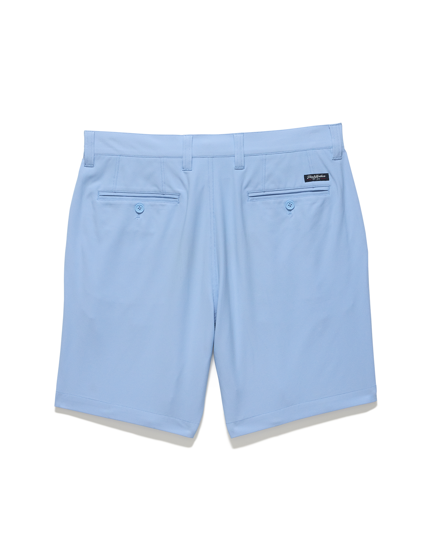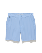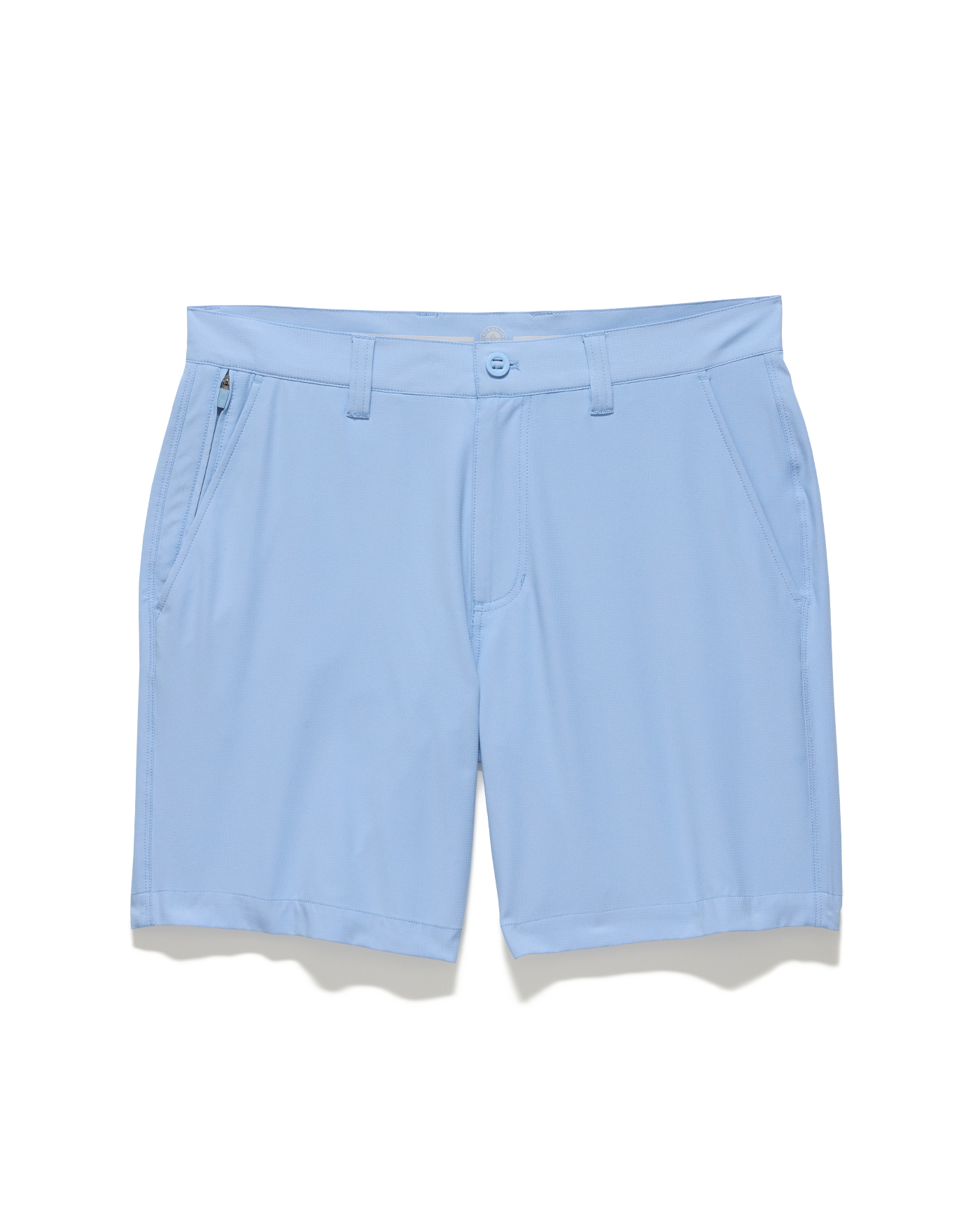 Our Pivot Performance Short is your go-to for a comfortable and polished style you can sport on or off the course. Feature-filled and structured with stretch, the highly functional micro-textured fabric is durable, resistant to rips, provides permanent UPF protection, and dries in a flash. Regular rise. Angled front pockets + additional zipper front pocket on right side; back mesh-lined slit pockets with button closures. Zip-fly front with button closure.