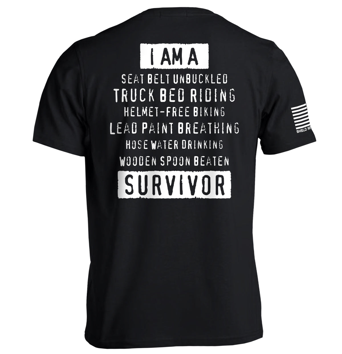 Due to available t-shirt stock we use different t-shirt brands depending on availability. Please be aware that this causes size variation between brands.I'm A Hard Times Survivor (Online Exclusive)