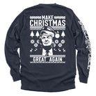 Due to available t-shirt stock we use different t-shirt brands depending on availability. Please be aware that this causes size variation between brands.Make Christmas Great Again Trump Sweater Print (Online Exclusive)