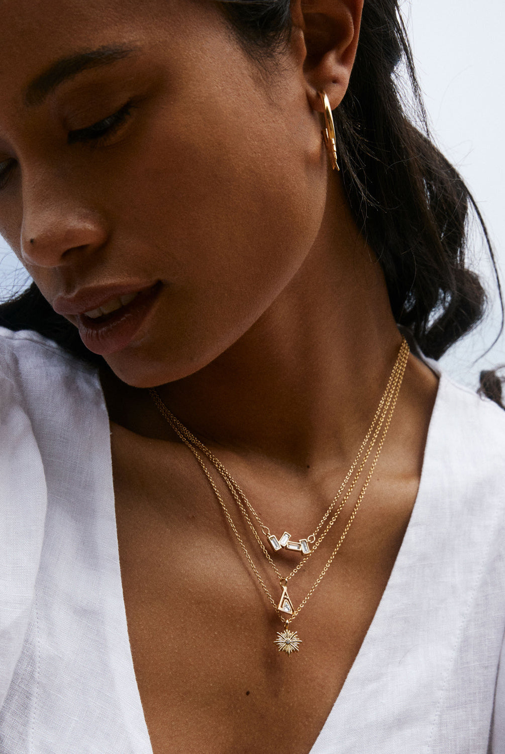 Los collares boutique pueden ser una hermosa manera de expresar un sentimiento que lo conecta personalmente. Un buen ejemplo de este tipo de diseño de collar es el collar “Mama”. Estos collares suelen combinar una delicada cadena de plata u oro con un colgante elaborado para deletrear la palabra mamá. Para las mamás, este collar puede tener un significado profundo y es probable que atraiga comentarios y elogios. El collar de inicial/letra es otra forma de expresar la identidad personal eligiendo la inicial que representa un nombre o apellido. Un ejemplo puede ser una gargantilla de oro o plata con un colgante con una inicial.