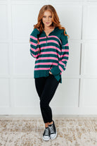 Well Situated Striped Quarter Zip Sweater in Green and Pink (Online Exclusive)