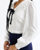 - Peter Pan collar with front ties