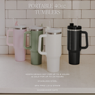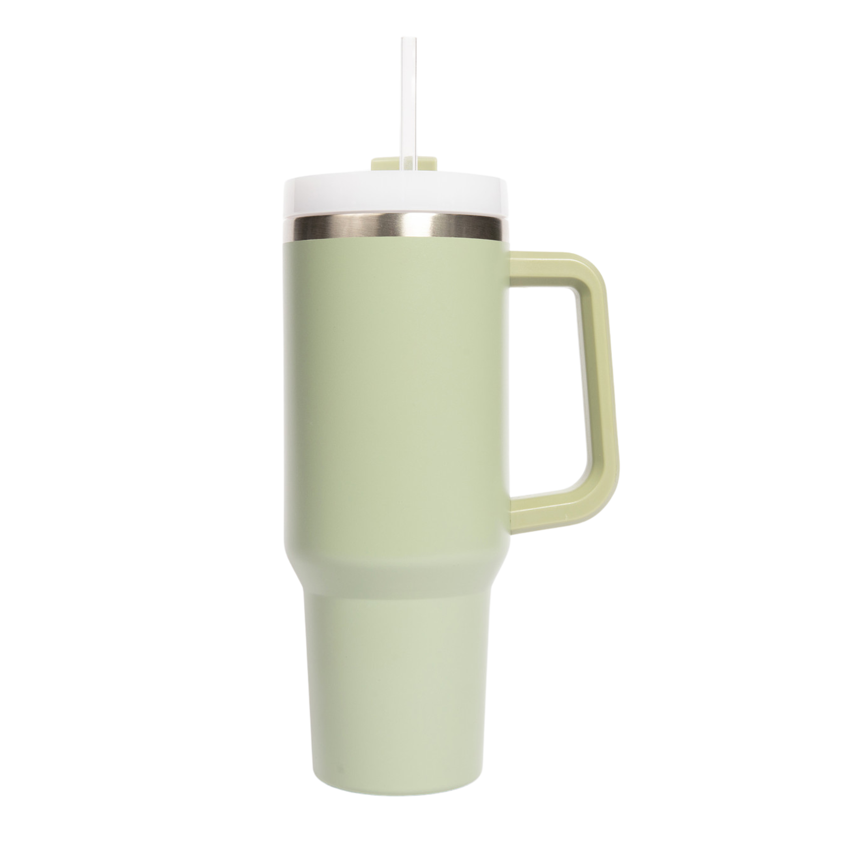 Meet your new hydration hero. Our tumblers are the perfect companion for your busiest days, with an easy-carry, comfort-grip handle and a narrow base that fits most cup holders. Perfect for any occasion, our premium stainless steel tumbler holds 40oz of your favorite beverage, keeping it hot for up to 8 hours and cold for up to 24 hours. The straw and lid are BPA-free - plus, our functional lid features a sliding sip cover with three positions: a straw opening, a drink opening, and a full-cover top. Cheers to you for staying hydrated!