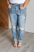 Up your denim game with our Aiden High Rise Patch Pocket Distressed Boyfriend Jeans from Judy Blue! Featuring a unique hybrid design that combines the comfort of joggers with the style of boyfriend jeans. The light wash and distressed details add a trendy touch, while the 4-way stretch ensures a perfect fit. Add an optional cuffed hem for a touch of personality. Experience the best of both worlds with these jeans.