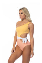 COLOR BLOCKING ONE SHOULDER CUTOUT ONE PIECE (Online Exclusive)