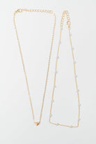 Add a touch of charm with this playful Heart of Gold Pendant Necklace Layered Set. The first showcases a delicate heart pendant on a 15.5" chain with a 2" extender, while the second sparkles with pearl beads on a 15.25" chain plus a 2" extender. Perfect for mixing and matching, these necklaces bring a fun, elegant vibe to any outfit.