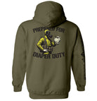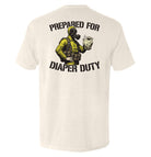 Due to available t-shirt stock we use different t-shirt brands depending on availability. Please be aware that this causes size variation between brands.Prepared For Diaper Duty Hazmat Suit