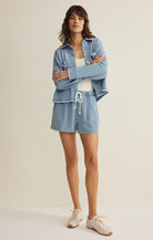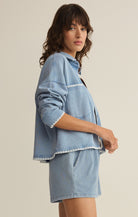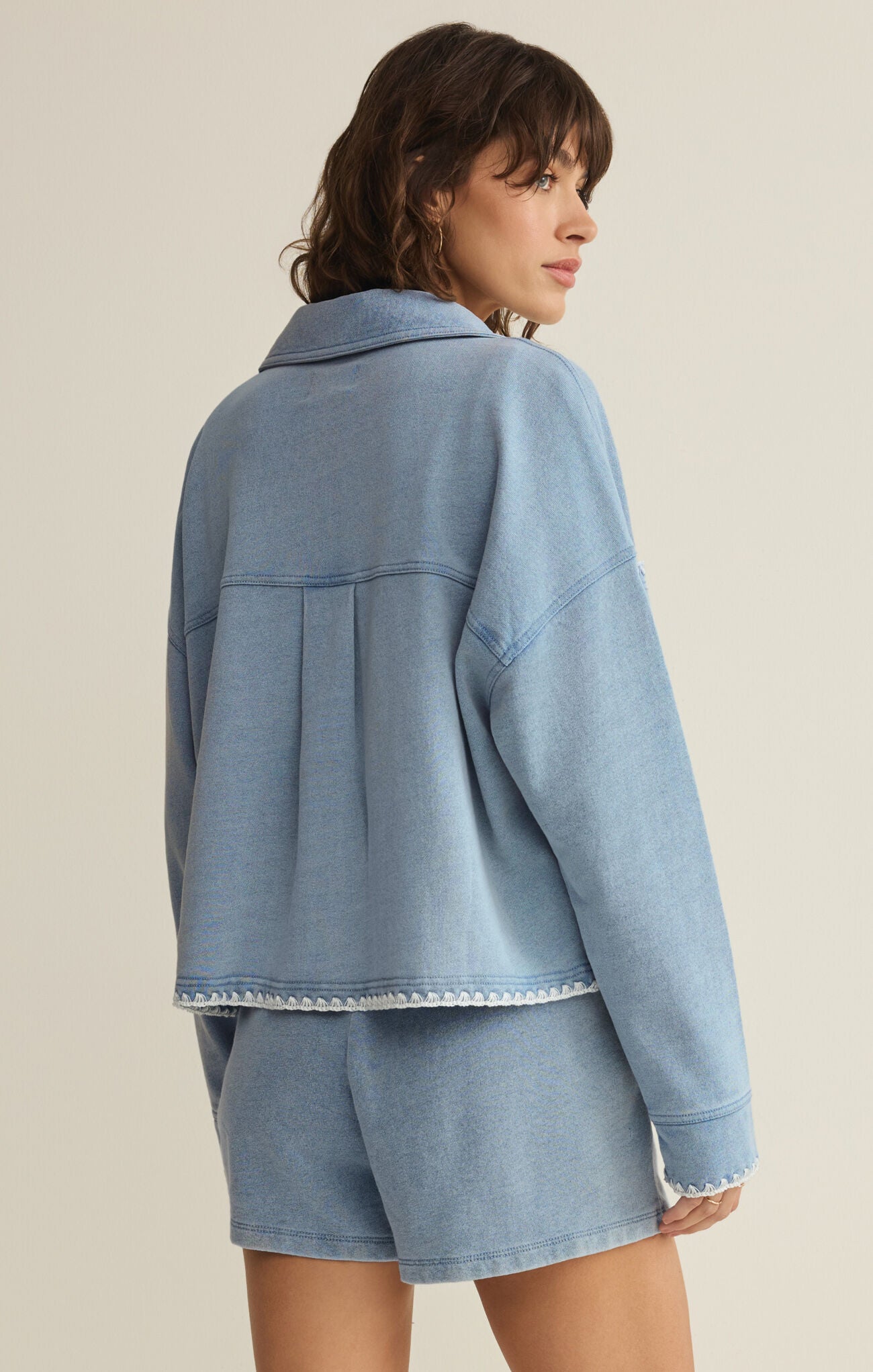 Crafted in our signature Knit Denim French Terry, this cropped jacket feels like your favorite sweatshirt but looks like structured denim. The relaxed fit keeps it effortless, while the whipstitch accents add just the right amount of character and detail. Toss it on over a tank, tee, or dress—this is the kind of piece you’ll reach for year-round.