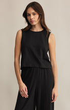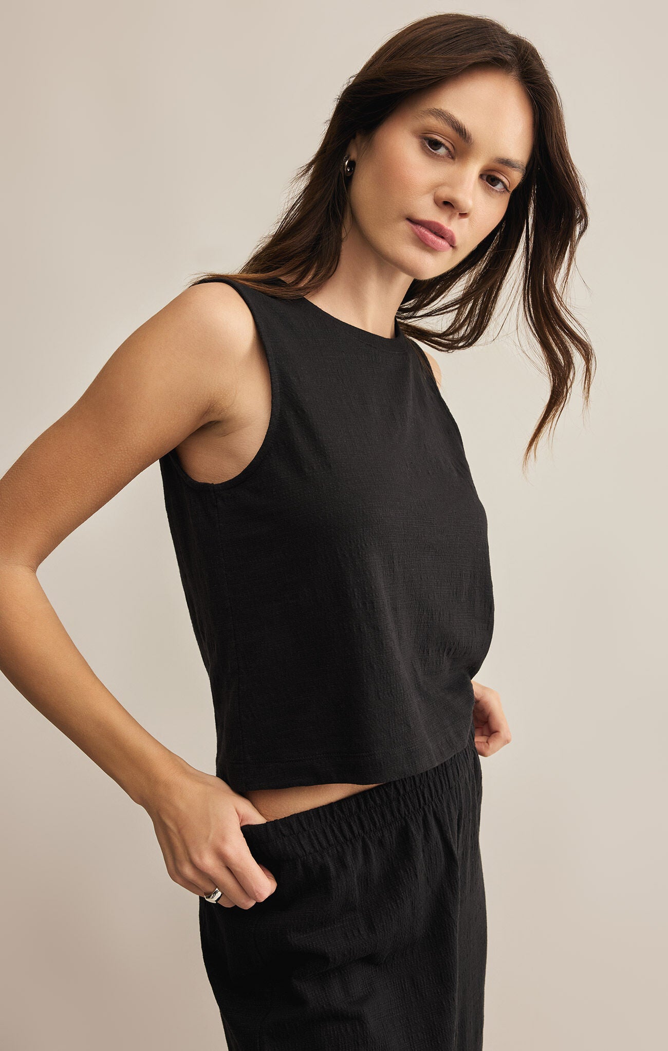 A laid-back essential with a textured twist, this sleeveless crewneck top hits at the waist and channels effortless cool. Its slub knit fabric and muscle tank style make it the perfect pairing for high-waisted denim or layered looks.
