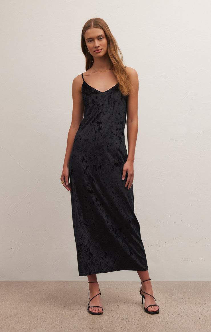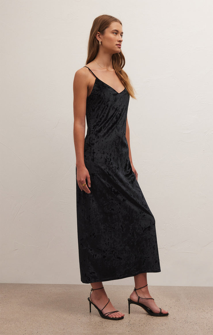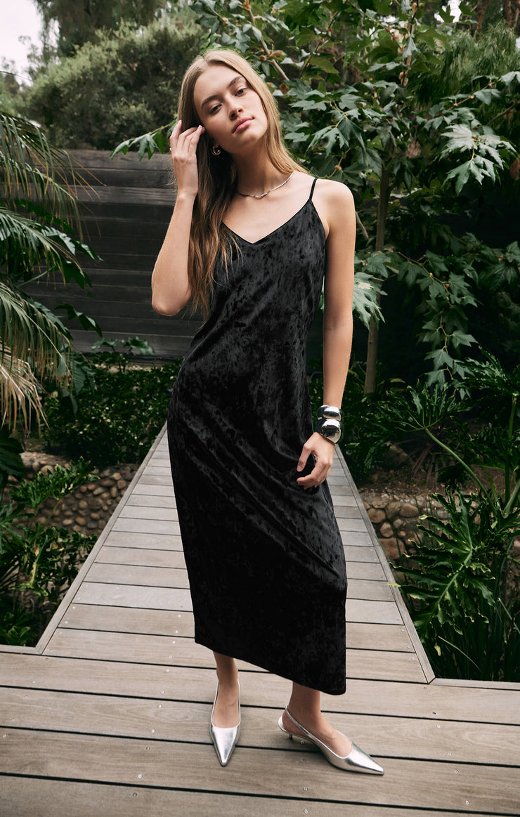 Robe midi en velours écrasé Selina