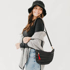 This bag is a trendy take on the updated fanny pack that can be worn in multiple ways. Wear it as a belt bag/fanny pack, crossbody, or shoulder bag. Comes in 16 colors and features a fun half moon shape with a coordinating shiny canvas strap and gold hardware and a pop of color with ribbon accent. We are obsessed with this style and the front zipper for easy access.