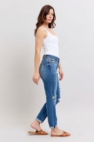 Featuring bold distressing at the knees and pockets, these jeans are all about that cool-girl, effortlessly edgy vibe đŸ˜ŽđŸ’„ Pair with heels or sneakers and slay all day.