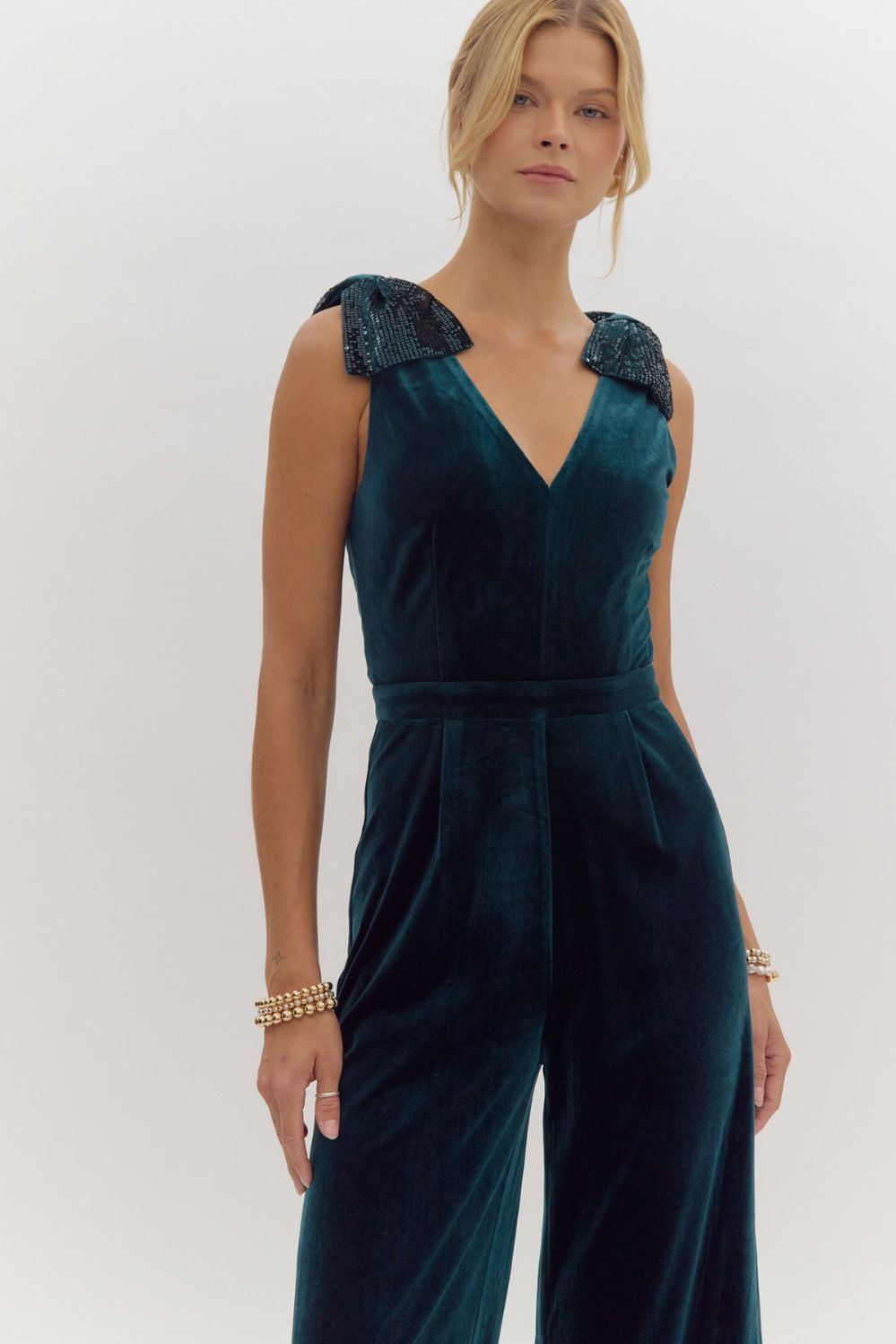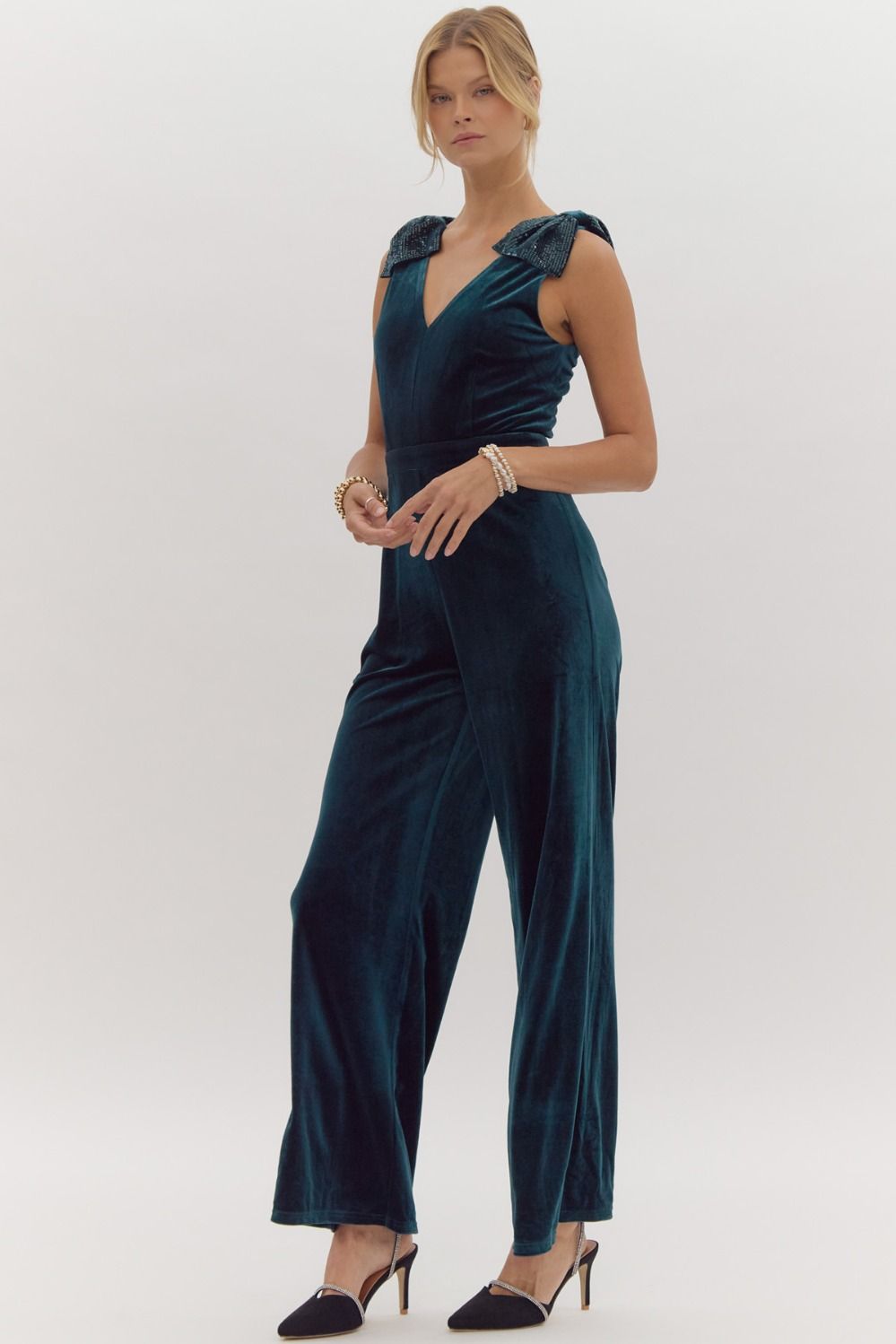 Soyez prêt pour la nuit dans notre combinaison en velours Check Me Out ! Cette combinaison glamour émeraude est non seulement élégante sans effort, mais aussi incroyablement confortable. Le tissu extensible est léger et parfait pour danser toute la nuit. Avec son détail floral sur le devant et sa fermeture à nouer et à glissière à l'arrière, il fera assurément sensation. Trouvez votre look parfait et complétez l’ensemble avec une paire de talons tendance et des boucles d’oreilles étincelantes. Comment allez-vous porter la combinaison Check Me Out en velours ?