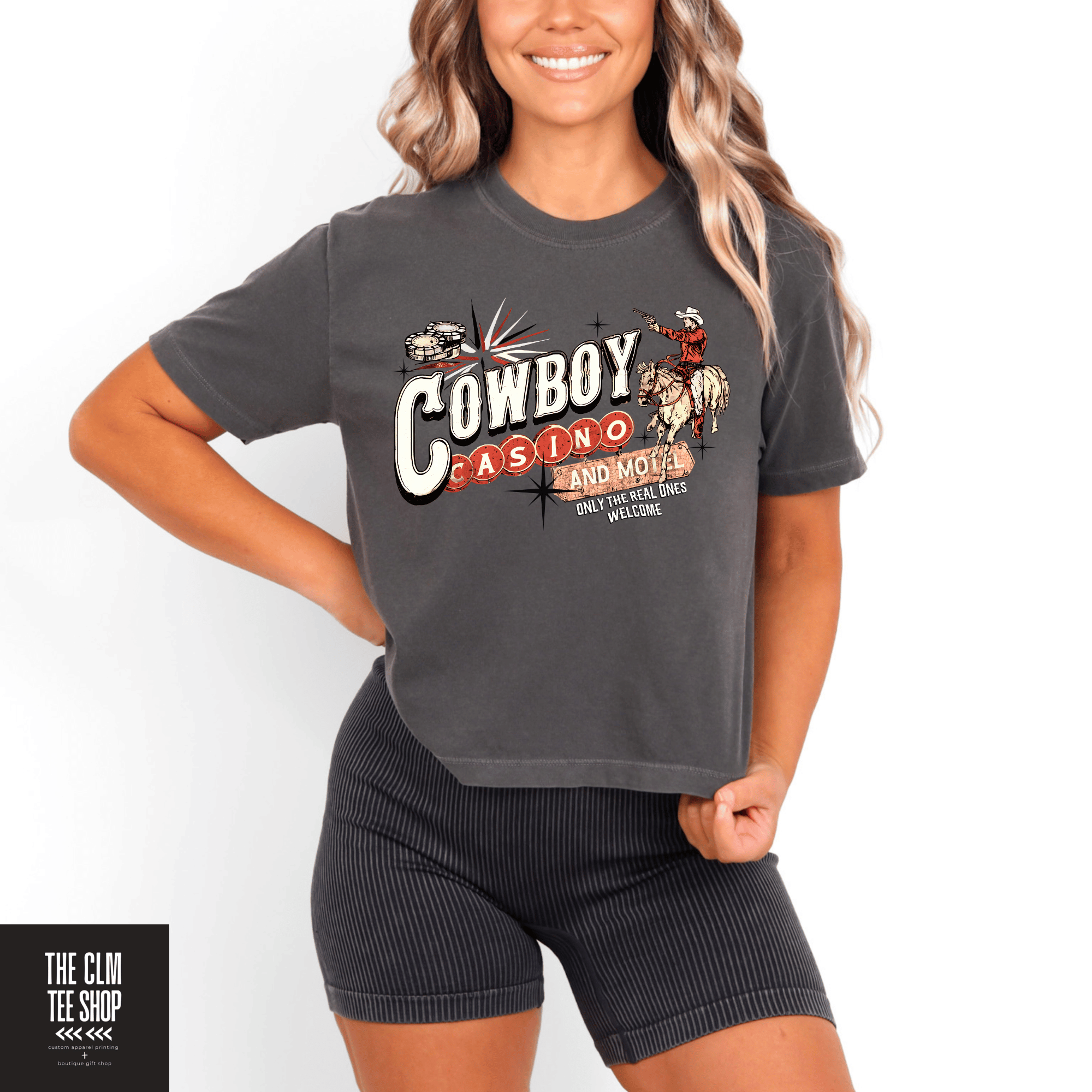 đâš Cowboy Casino & Motel Cropped Tee â âOnly the Real Ones Welcomeâ đ°đ€