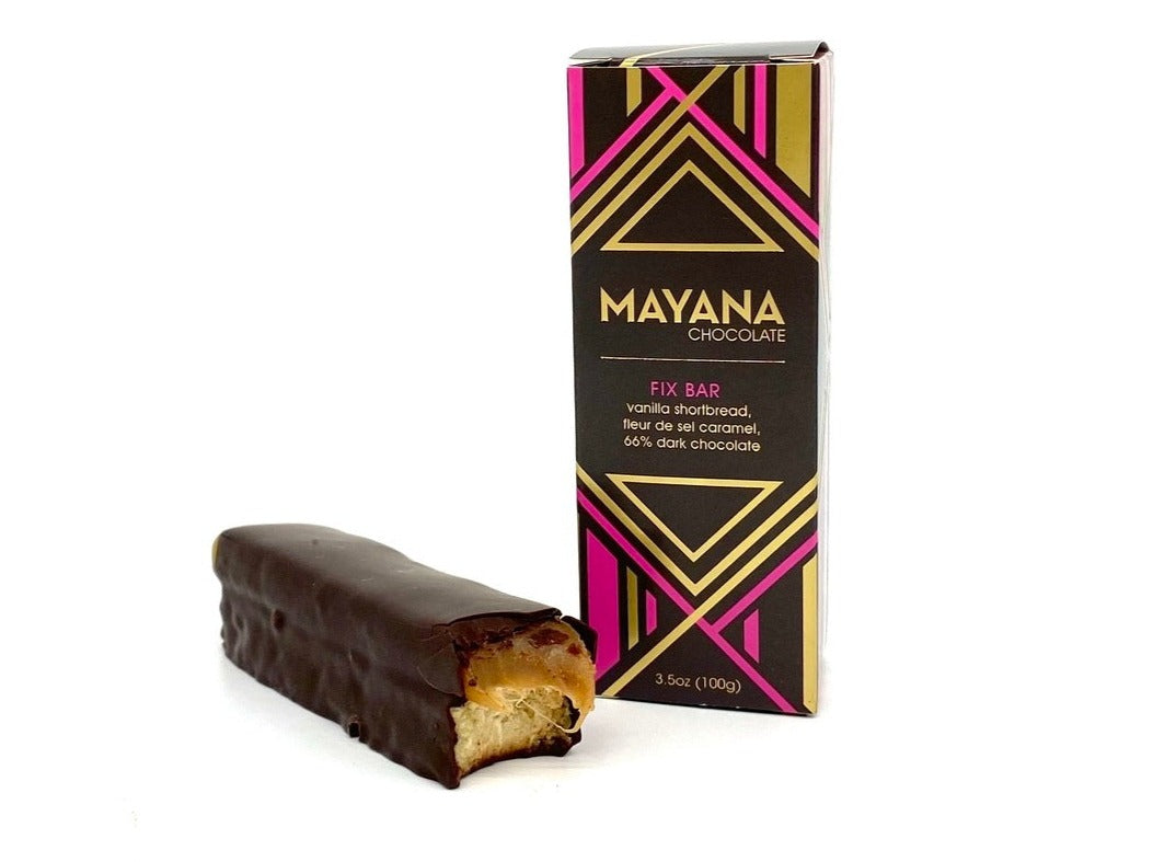 One thing leads to another in Mayana's Fix Bar. With vanilla-bean shortbread, fleur de sel caramel and dark chocolate-- this bar delivers every bit of the fix it promises.