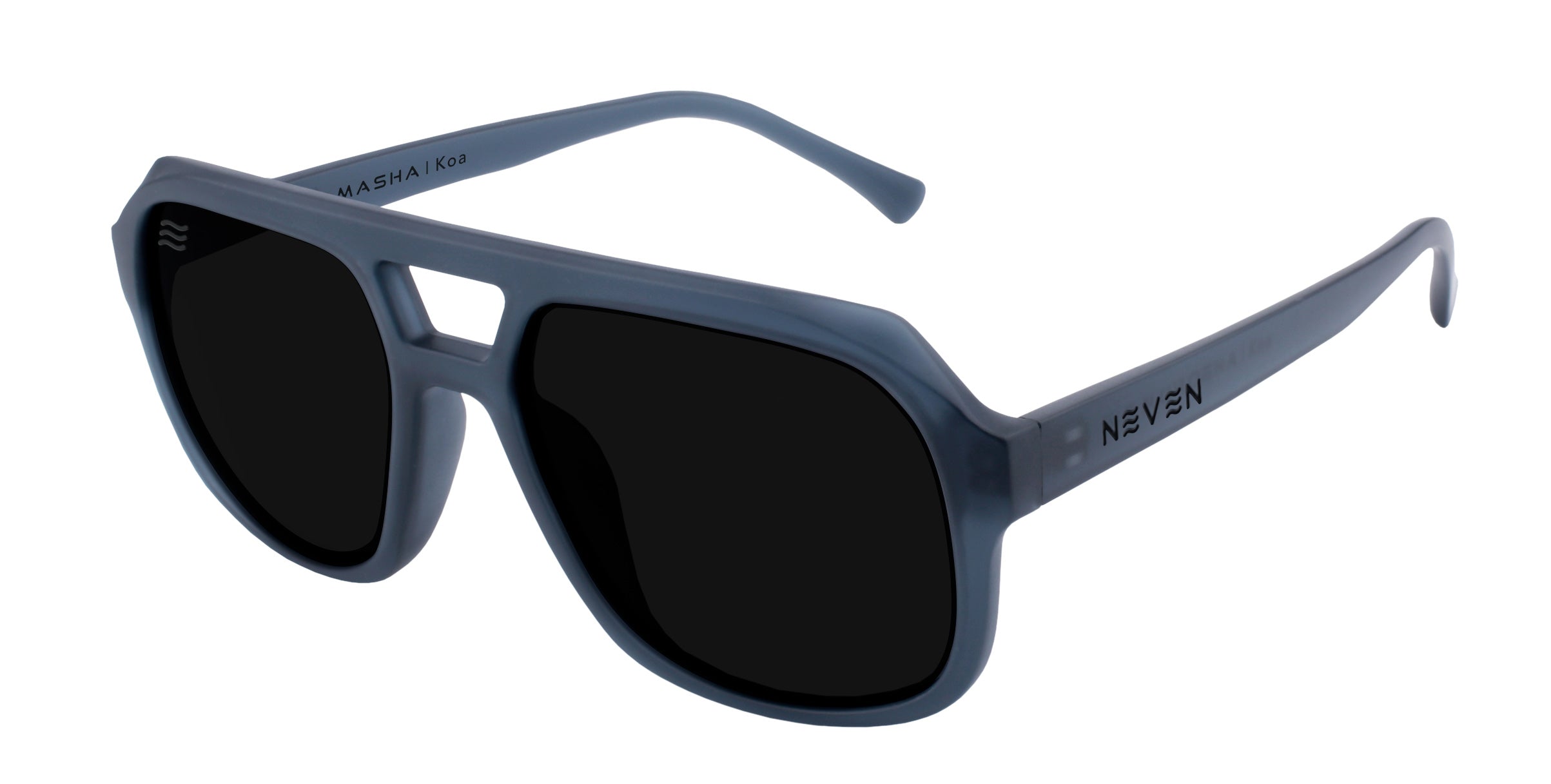 Introducing Koa aviator sunglasses from our Masha collection, a fusion of Hawaiian warrior strength and contemporary style. With blacked-out lenses for mystery and blue-gray frames inspired by ocean waves, Koa captures heritage and modernity in one bold design. Embrace the warrior spirit and island vibes, symbolizing courage and tranquility. Step into the legacy with Koa – it's not just eyewear, it's the heart of Masha on display.