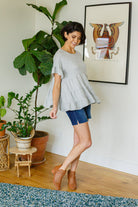 Keywords: Babydoll, Ruffle, Peplum, Gray, Short Sleeve