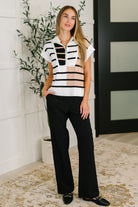 The Lonely Traveler Striped Quarter Zip Vest is your perfect companion for effortless style and comfort. Made from a mid-weight ribbed knit, this vest features a banded high neck with a half zip and sleek silver hardware for a touch of modern flair. The banded sleeve cuffs offer a snug fit, making it an ideal layering piece for cooler days. The striped pattern adds a timeless, versatile touch, while the relaxed design ensures you’ll feel just as good as you look. Whether you're hitting the road or relaxing at home, this vest is the perfect blend of function and fashion.
