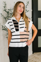 Lonely Traveler Striped Quarter Zip Vest in White (Online Exclusive)
