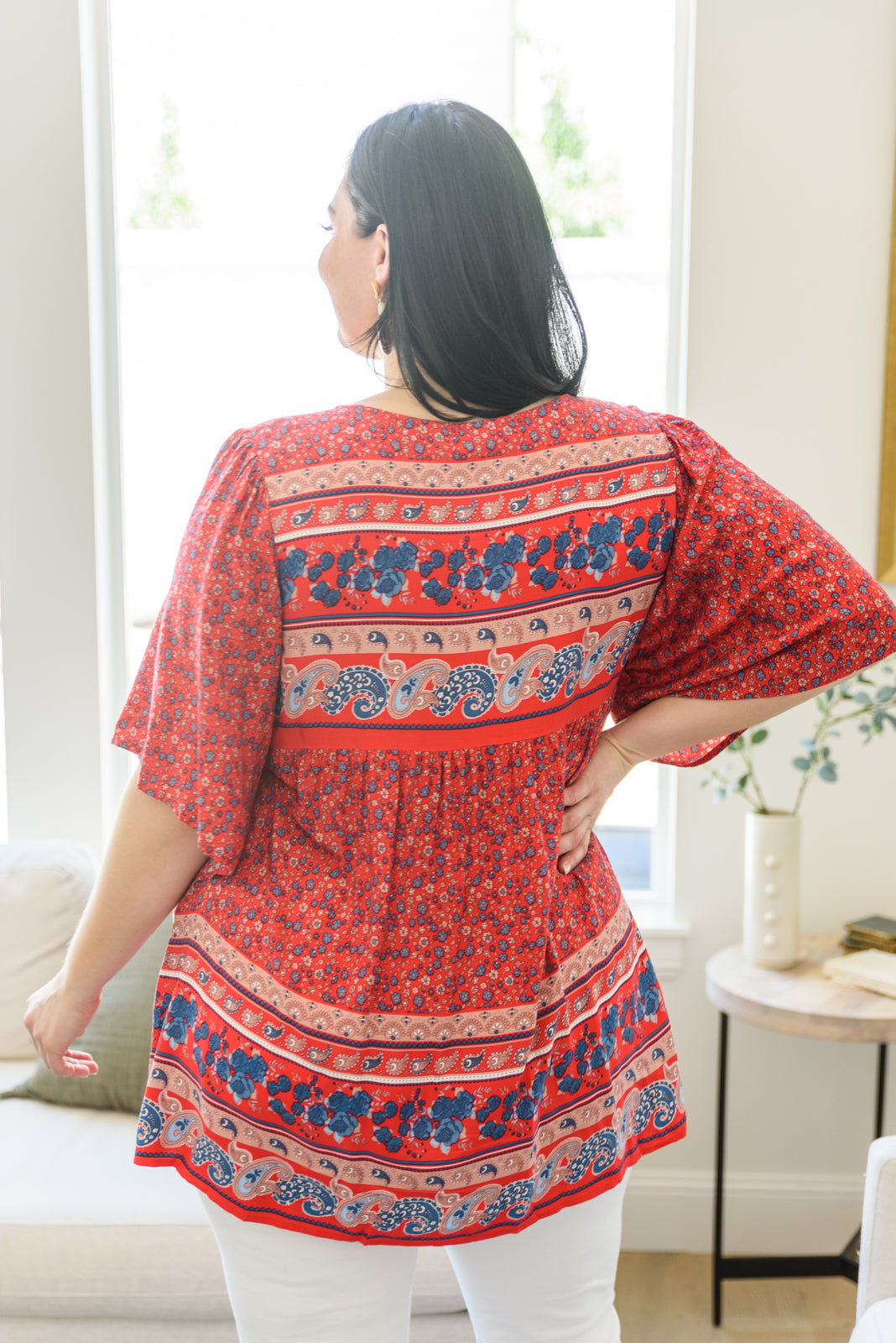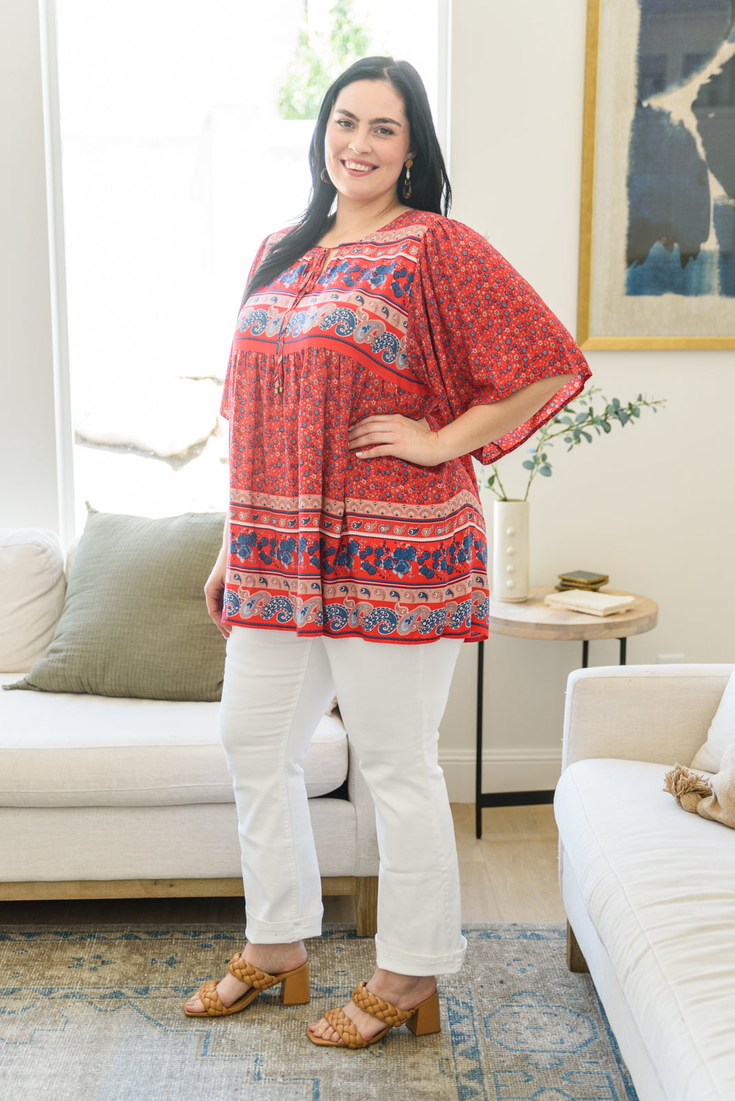 L'Easy Street Top est tellement incroyable qu'il nous donne des papillons ! Nous nous évanouissons devant les manches cloche, l'encolure crantée avec lien à nouer, la silhouette babydoll et l'imprimé cachemire et floral le plus étonnant ! Associez-le à votre jean préféré et aux talons assortis et laissez le haut faire le reste !