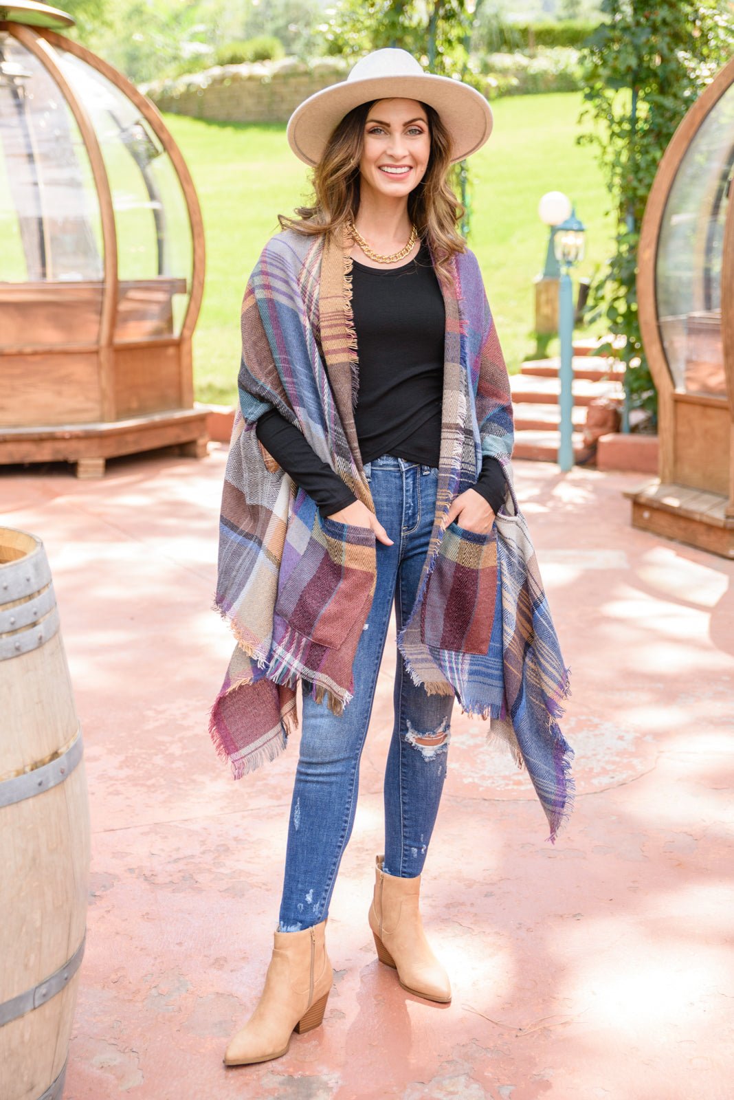 • Fab en kimono à carreaux avec poches