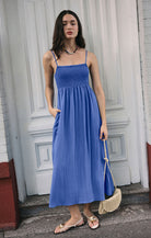 Our take on the popular sundress style, this midi dress is made using our breezy rayon fabric and features a smocked bodice with adjustable straps and a straight neckline. You'll love the pockets and relaxed fit, easily adding it to your daily rotation.