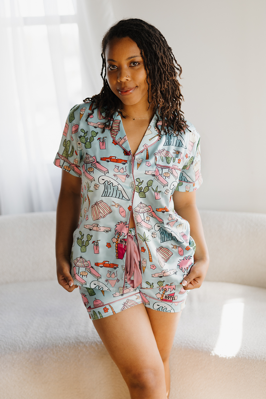 Cheers to Bedtime Satin Pajamas Shorts Set (Online Exclusive)