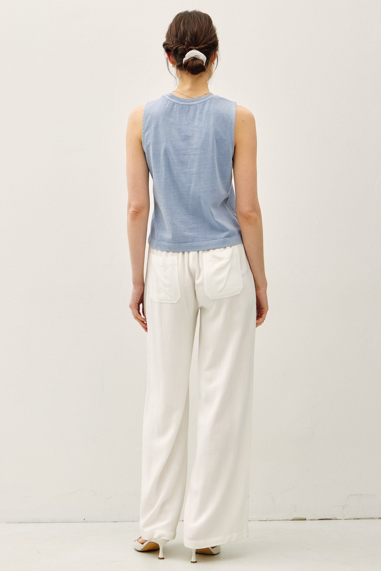🤍 Sleeveless crew neck = classic, modern, and endlessly wearable