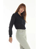 • Half-Button Front: Creates versatile styling options for casual or elevated looks