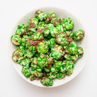 A bag of our Chocolate Mint popcorn. Peppermint flavor candied popcorn with dark chocolate drizzle. Uniquely tasty!