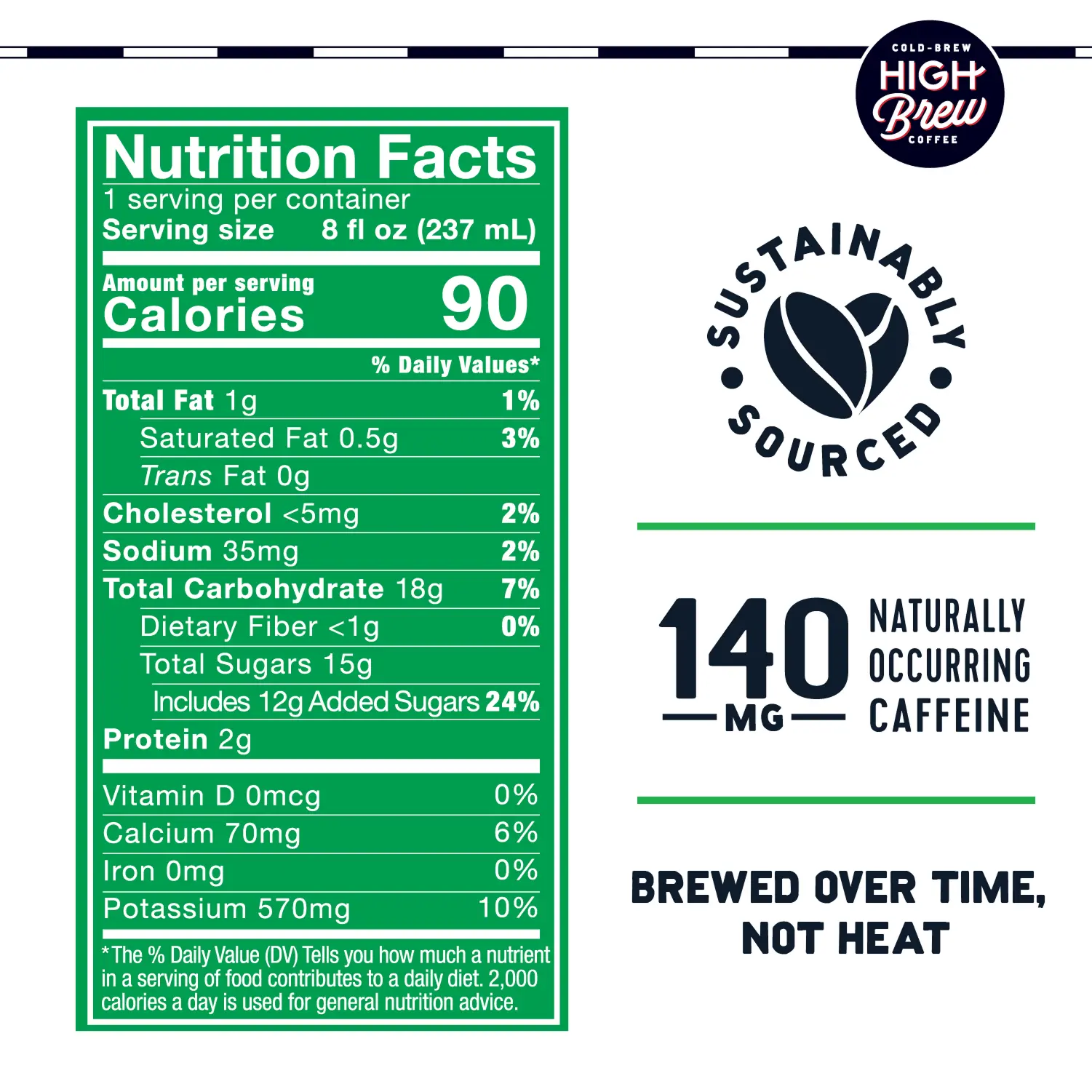 Delicious cold-brew coffee infused with dark chocolate. At only 90 calories, it’s the best of both worlds.