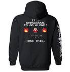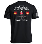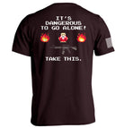 Due to available t-shirt stock we use different t-shirt brands depending on availability. Please be aware that this causes size variation between brands.It's Dangerous to Go Alone