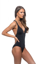 SOLID V FORNT ONE PIECE SWIMSUIT WITH BRAIDED BACK DETAILS (Online Exclusive)