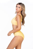 SOLID YELLOW TEXTURED SCALLOP HIGH WAIST BIKINI SET (Online Exclusive)