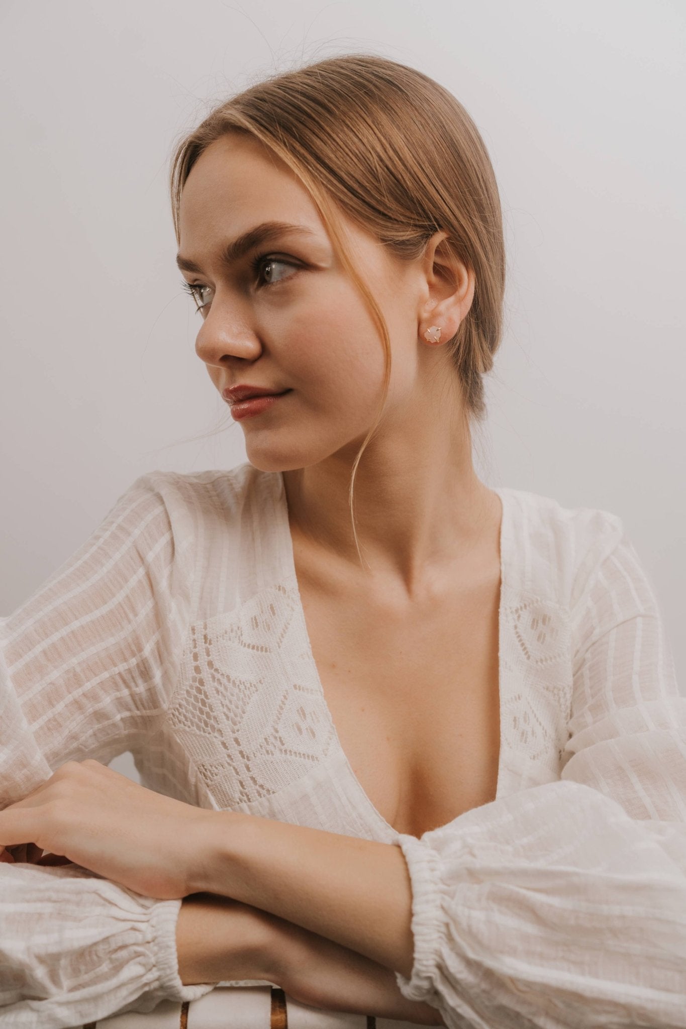 Hand-cut raw stones vary in shape and size. Each stone is set in a 4-prong claw setting. Rose quartz is know as the love stone.