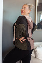 Look cozy and stylish in this Mixed Emotions Color Block Hoodie. Enjoy the comfort of soft knit fabric, dolman sleeves, and a leopard lined hood and drawstring for an extra touch of style. The v-neckline is the perfect pairing with your favorite jeans or joggers.