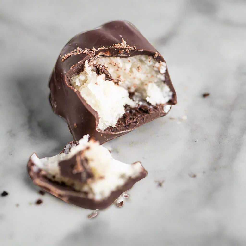 Rich coconut and creamy potato dipped in dark chocolate.