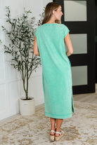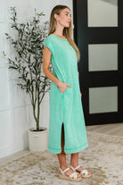 Experience effortless style and comfort with the Mineral Wash Relaxed Maxi Tank Dress. Crafted from stretchy jersey knit, it features a banded, ribbed round neckline and sleeve cuffs for a flattering fit. Functional side pockets add convenience, while side slits enhance movement. Its relaxed maxi silhouette makes it perfect for any casual occasion. Available in three versatile colors, this dress is a must-have for your wardrobe. Preorder now to enjoy laid-back elegance all season long.
