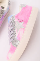 Stand out in style with our Supernova Sneakers in Pastel Tie Dye! Made with a suede and faux leather upper, lace up design, and gold star and stud accents, these sneakers will elevate any outfit. The off-white 1" sole adds a touch of sophistication and comfort to your step.