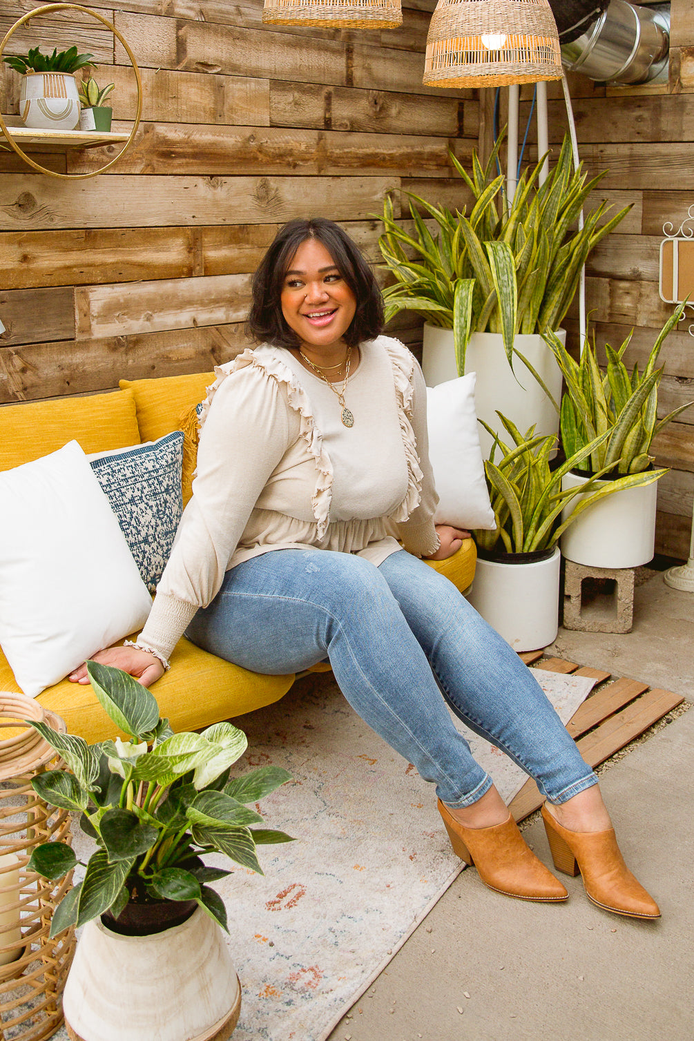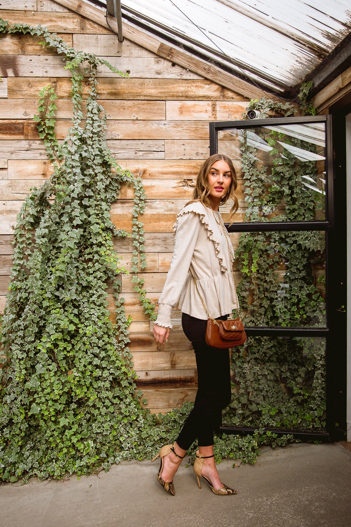 Keywords: Tan, Ruffle Top, Long Sleeve, Sweater