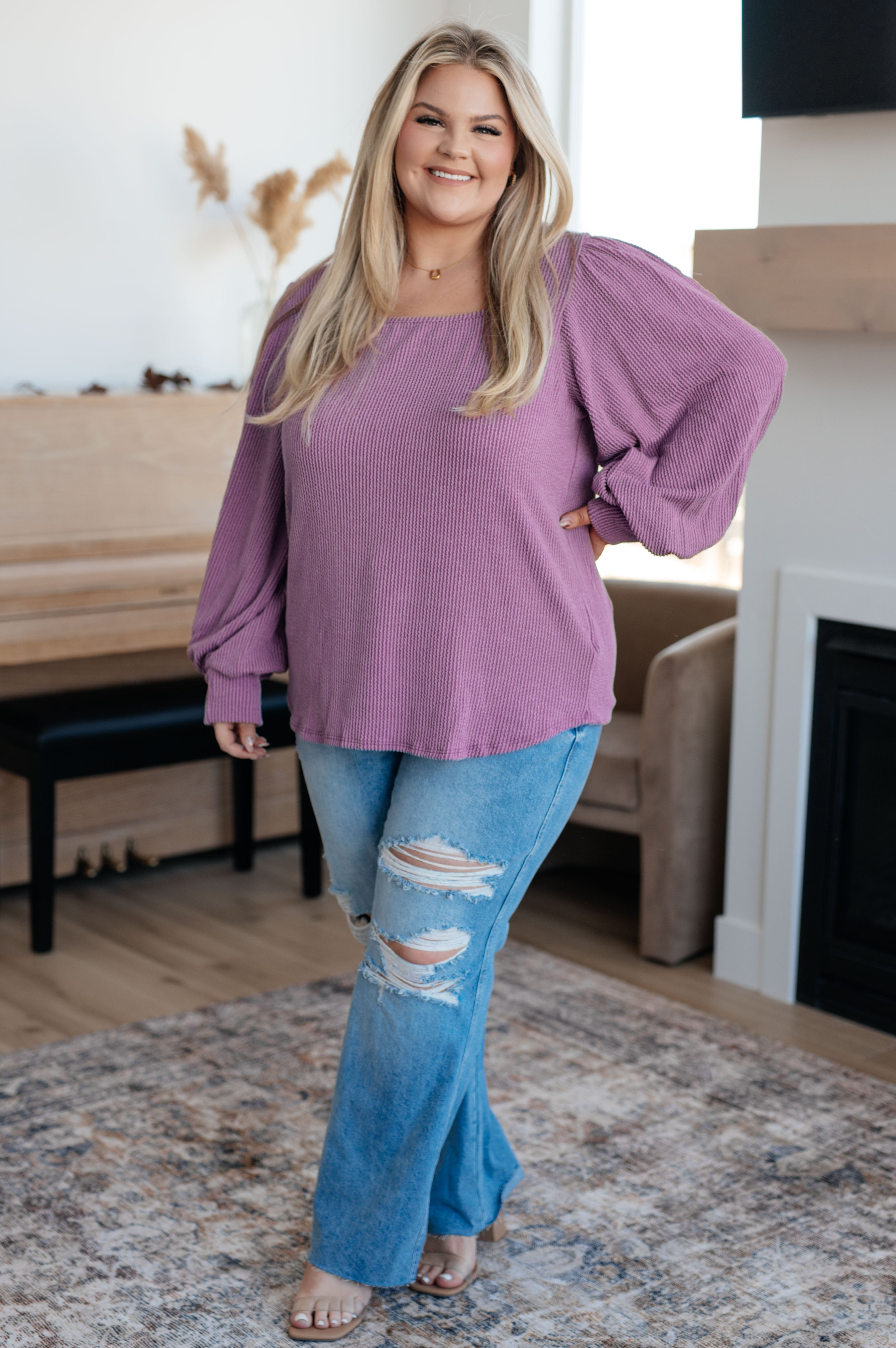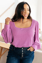 This True to Your Word Balloon Sleeve Top features a chic textured ribbed knit and square neckline for a stylish look. Its balloon sleeves and banded cuff provide an airy feel, making it a perfect addition to any wardrobe.