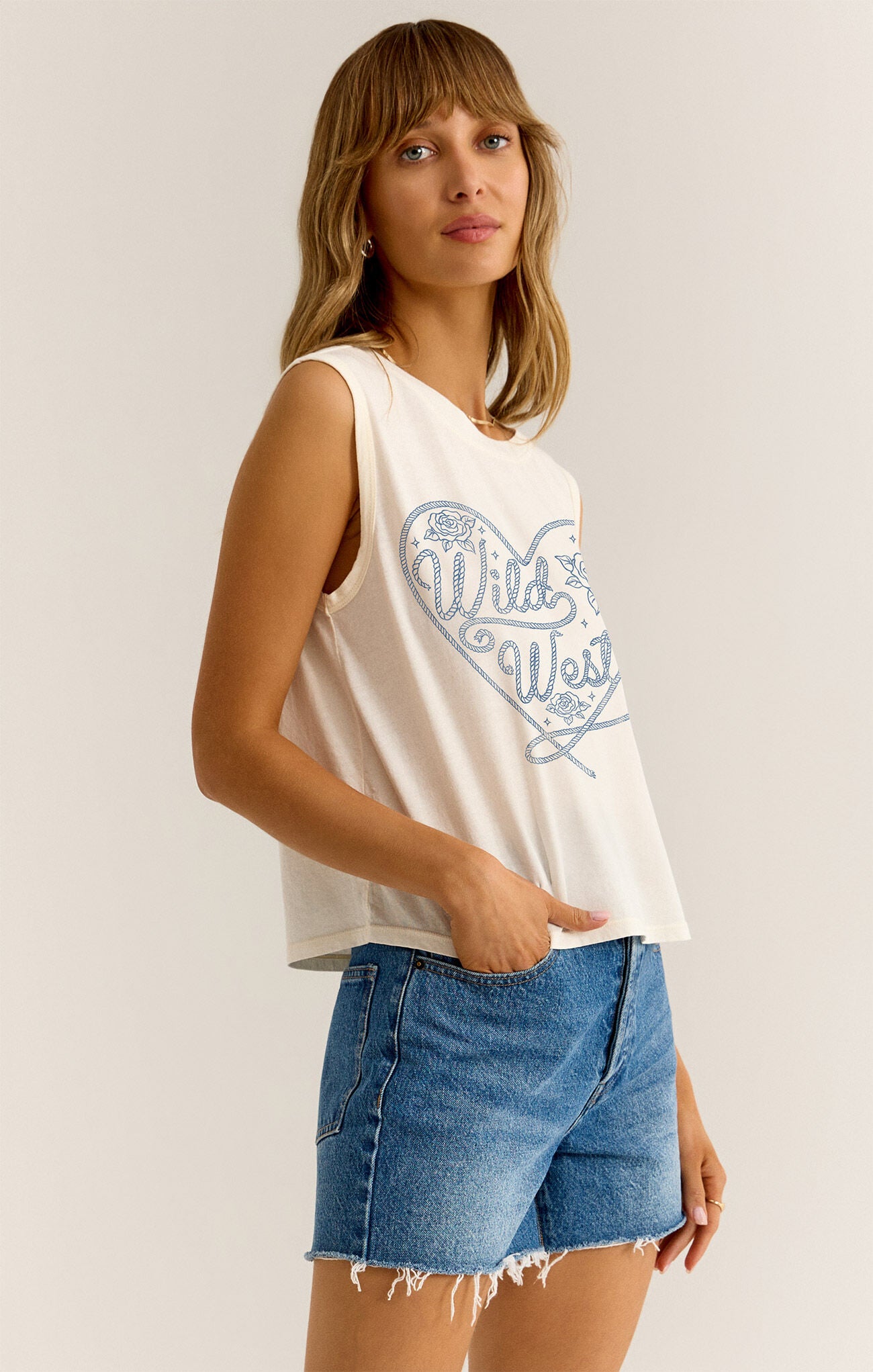 Y'all ready for a wild ride? The WILD WEST LA MER TANK is here to take you on an adventure! With a comfortable regular fit, relaxed crew neck, and vintage wash, this tank is perfect for any casual occasion. And let's not forget the soft hand cotton jersey and quirky Wild West screenprint. So hop in and let's go!