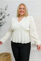 Adding a chic touch to your outfit is never a bad idea and the Xanidu Long Sleeve V Neck Blouse In White is the perfect pick to do so! A stunning plisse fabric shapes a v neckline that drops into a peplum style waist, with long balloon sleeves, finished with a puff shoulder detail and elastic cuffs.